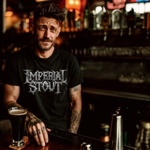 What if your favorite pitch-black ale had a metal band and no merch budget, just a garage, a screen printer, and strong opinions on fonts. This is the shirt they’d sell.